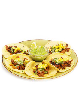 Tacos de Pollo o Vegetarianos con queso y lechuga, con salsa a elegir. Gluten